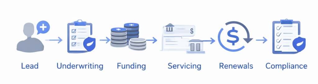 A modern MCA CRM must act as the central operating platform for the entire business, connecting: